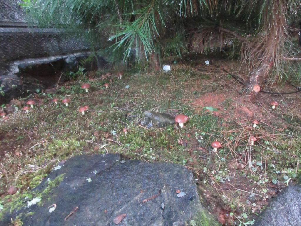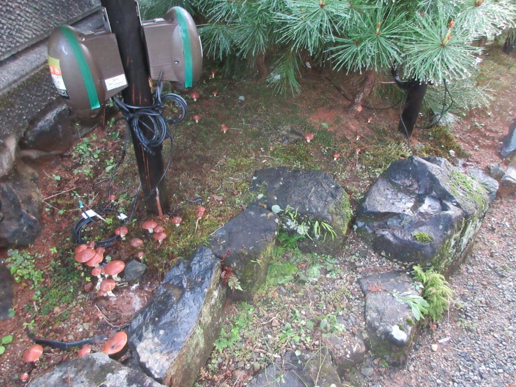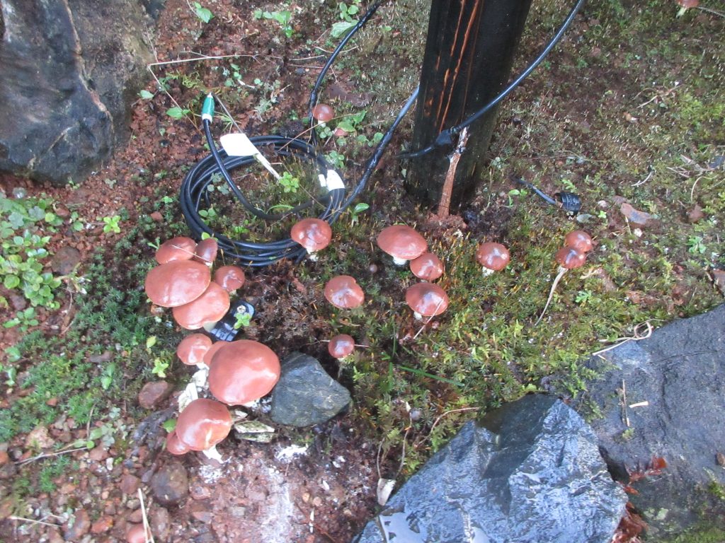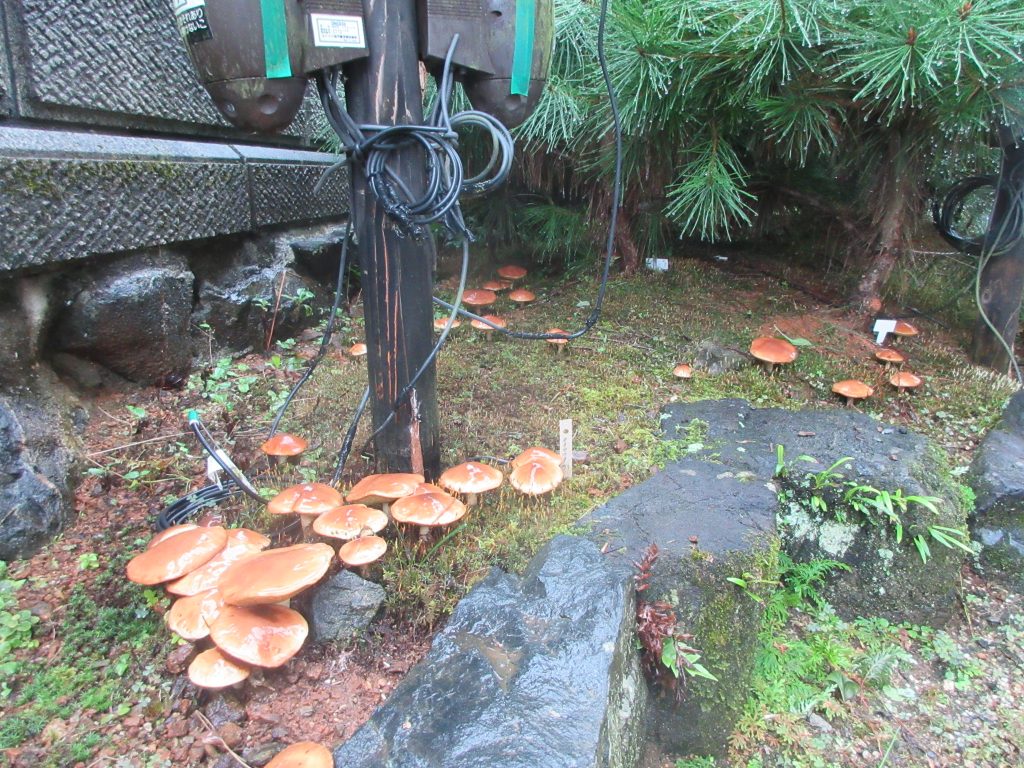 色々な条件下で印加等の負荷をかけながら、毎年発生する子実体の種類の変遷を庭で楽しめるのもこの「子実体発生試験区」です。最終目的を達成するのにはまだまだ年数がかかりそうです。
