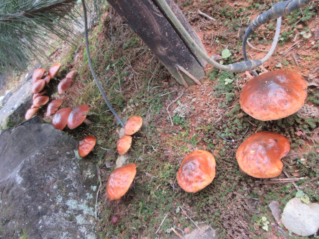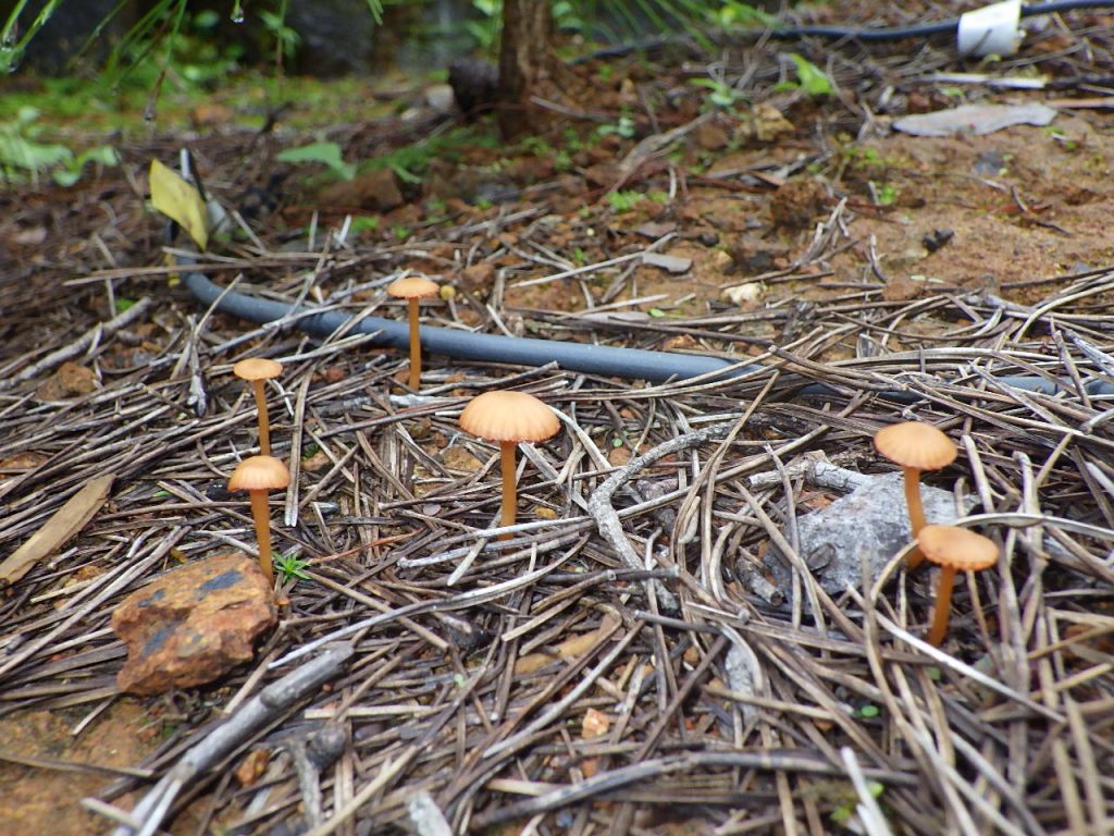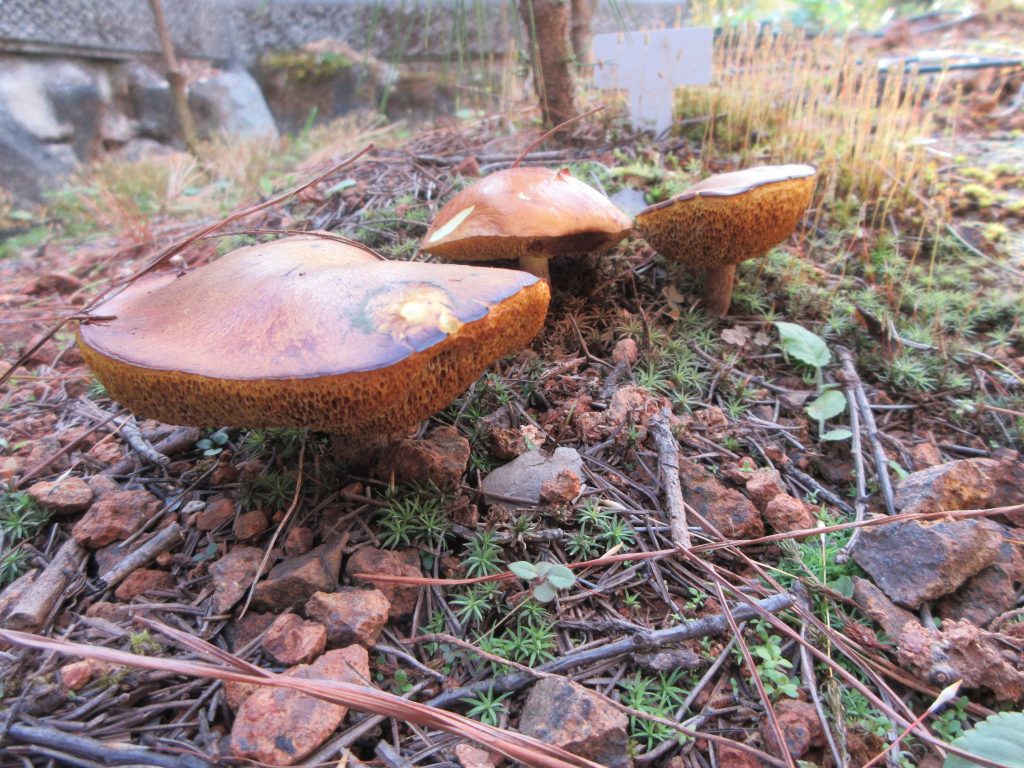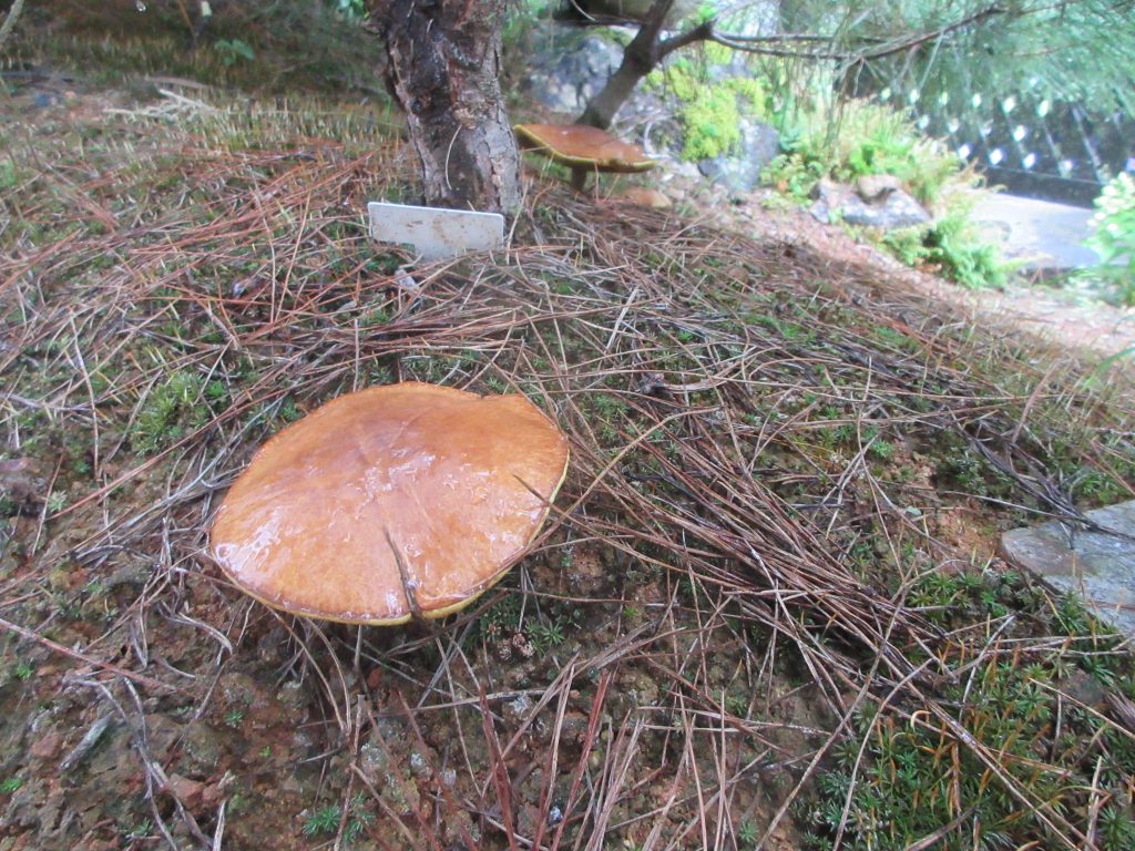 色々な条件下で印加等の負荷をかけながら、毎年発生する子実体の種類の変遷を庭で楽しめるのもこの「子実体発生試験区」です。最終目的を達成するのにはまだまだ年数がかかりそうです。