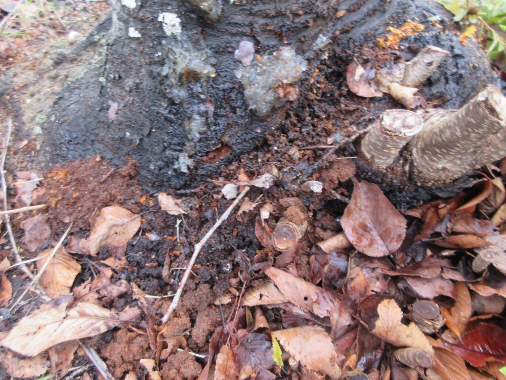 現地研修の時に樹幹注入剤の施工も行う場合がありますが、最後に必ずドリルカスを回収する指導をしています。今後、経過観察が何年も続くわけですが、その観察の支障になる様な作業痕跡は残すべきではありません。ましてや薬剤を回収し忘れるのはもってのほかです。まだまだ配慮の足らない現場がある状況下では巡回が欠かせません。(施工業者には厳しく申し入れ、来年、再確認に行く予定です)