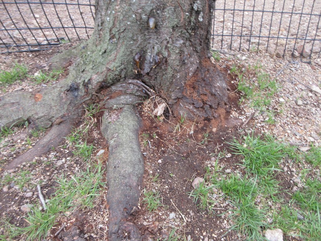 帰路、岸和田SAのクビアカ被害木処置進捗状況を確認しています。伐採と樹幹注入の準備が進んでいるようです。対象木はマーキングがされていました。